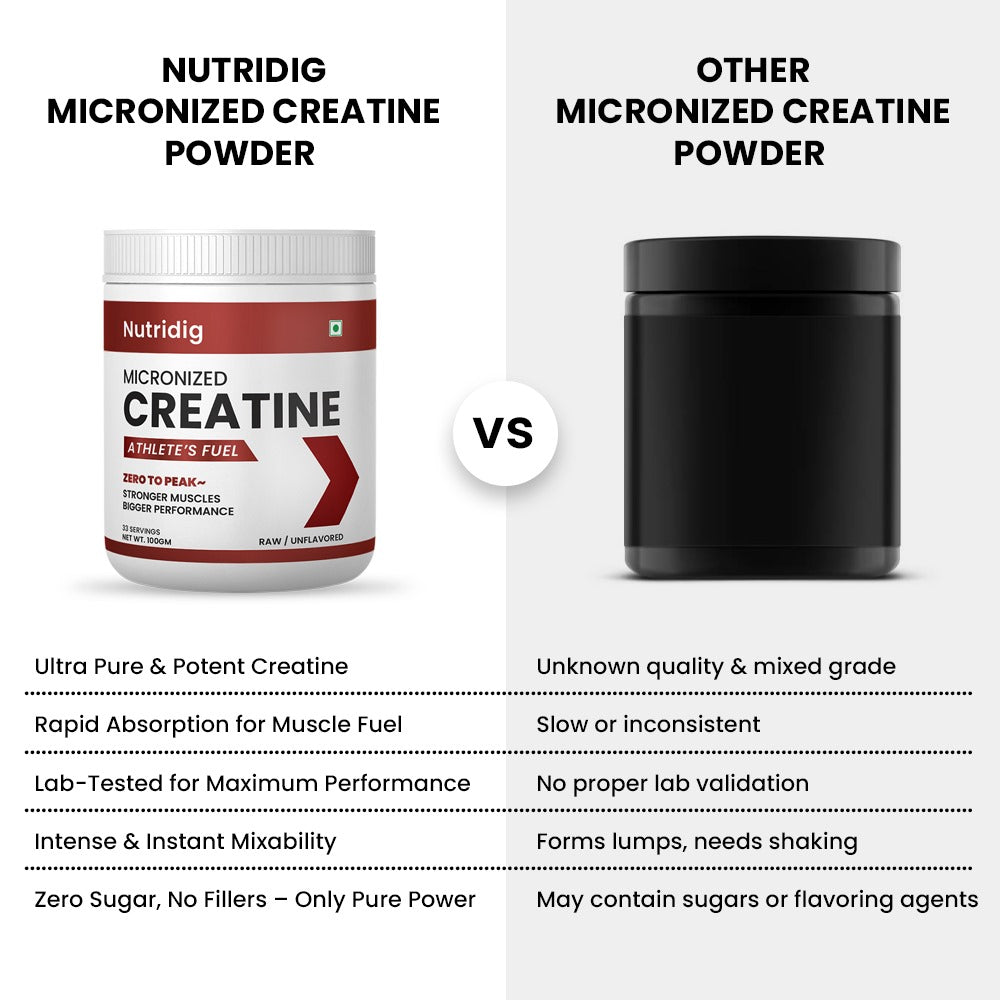 Power up your workouts with NutriDig’s ultra-fine Micronized Creatine Monohydrate. Designed for faster absorption and better mixability, this pure creatine boosts strength, endurance, and muscle recovery—naturally and effectively.