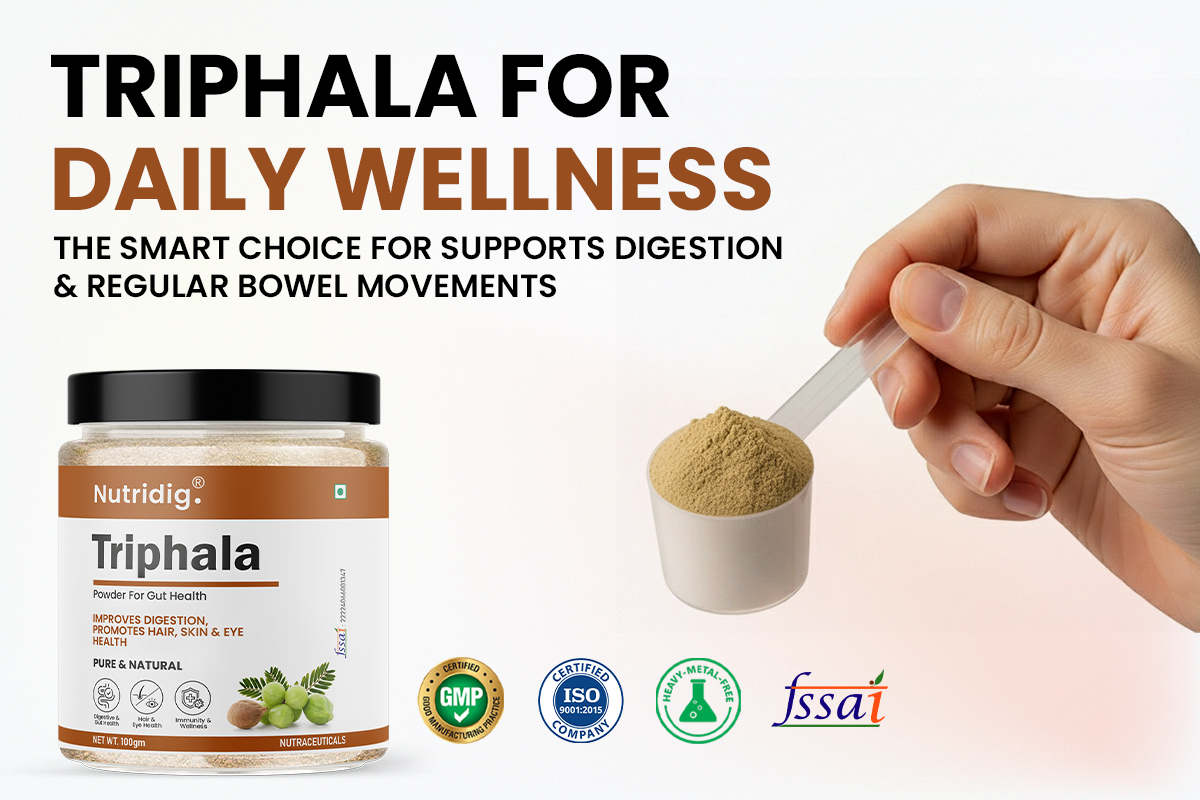 Nutridig® Triphala Powder combines the power of Amla, Haritaki, and Bibhitaki—three sacred fruits of Ayurveda known for their cleansing, rejuvenating, and restorative properties. Beyond digestion, Triphala is celebrated for promoting natural detox, glowing skin, strong hair, and overall vitality. Processed in an ISO & GMP-certified facility, this fine powder ensures purity, potency, and effectiveness in every scoop.