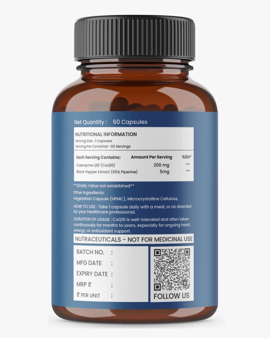 ✅ High Potency: Advanced Formulation - 200mg Co-enzyme Q10 (Ubiquinol), with added piperine for superior absorption.
