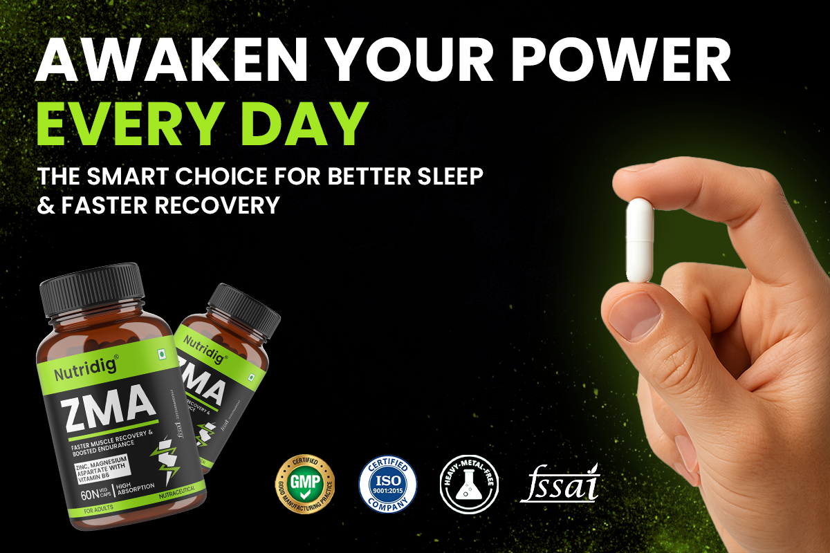 Nutridig® ZMA Capsules combine Zinc Methionine, Magnesium Aspartate, and Vitamin B6 in a clinically balanced formula designed to support muscle recovery, endurance, hormone balance, and restful sleep. This powerful blend helps athletes, fitness enthusiasts, and wellness seekers alike achieve optimal performance and daily vitality.